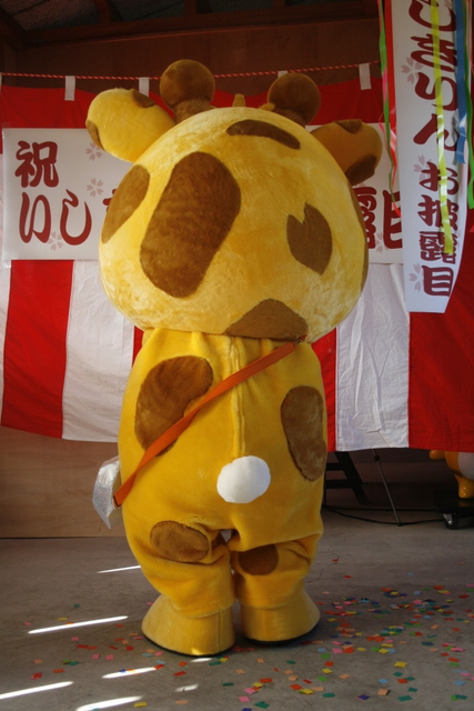 | 「石切さん」の愛称で親しまれている石切神社。近年子供づれの参拝客も多く見受けられるようになり、参道商店街の魅力をアピールし、更なる活性化を目的として大阪のデザイン会社現代企画との共同開発によって2010年1月に誕生。 2010年2月3日に行われたお披露目会で着ぐるみが本格デビューを果たしました。 身長 1m4cm 体重 スイカ4個分 好きな食べ物 よもぎ、葉っぱ、生野菜 嫌いな食べ物 生肉系 誕生日 1月4日 好きな色 杏色(日本の伝統色) 住まい 石切参道商店街で葉っぱがあるところ 好きなこと 商店街めぐり 食べ歩き 両親がキリン。働き者。でもおっちょこちょい お気に入りのポシェットは何でもでてくる4次元ポシェット??? 頭の後ろにハート型の模様がある 実際のキリンと同じく時速50kmで走れるらしい 鳴き声は「モー」 |