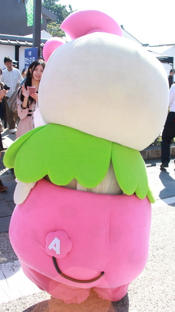 頭の上に阿倍野区の花である桃の花を載せた妖精。平成18年に誕生しました。
