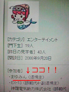 ページの左下を見ると、道場主「まゆみん」の名前が表示されています。