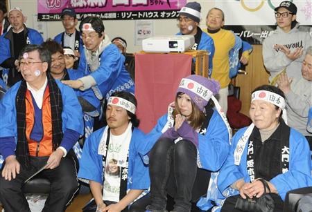 藤森選手の地元長野県長和町では17日未明から家族や町民ら約50人がホールに集まり