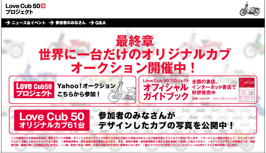 著名人60人 世界に1台だけの貴重なカブが60台 それがヤフオクで出品されます
