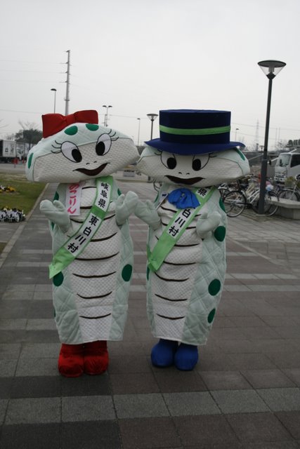 | ツチノコの目撃情報があるという東白川村。 村おこしの一環として毎年「つちのこフェスタ」が開かれるなど「つちのこの里」としてPR中。最近手作りの着ぐるみで「つっちー」と「のこりん」が誕生しました。 |