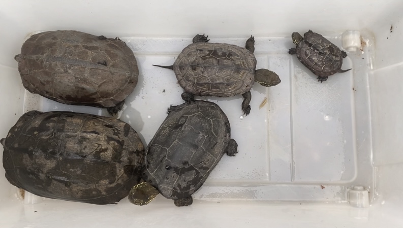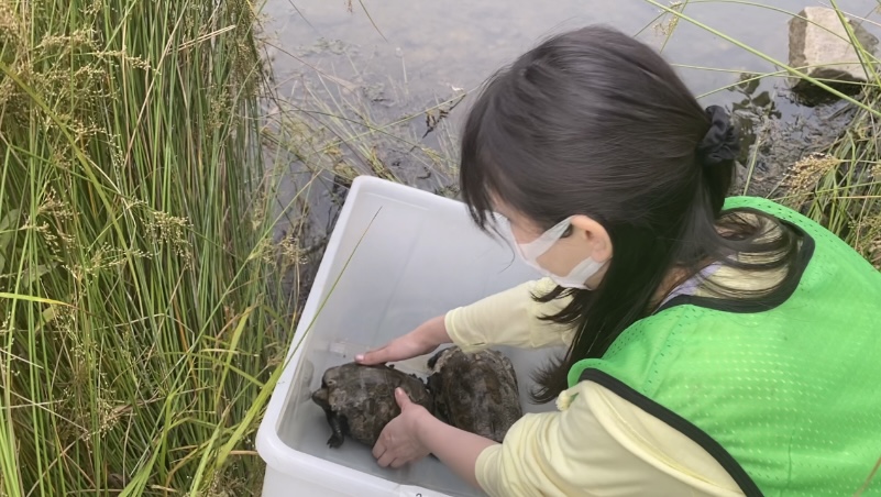 調査後のカメたちを、元いた場所へ放流してきました。