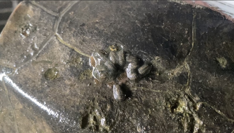 クサガメの甲羅や皮膚には、ヌマエラビルもついていました。