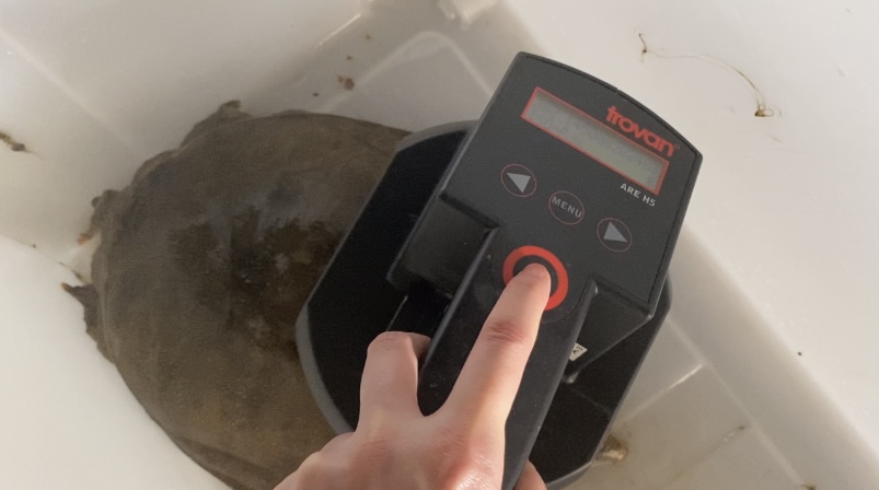 スッポンは、甲羅に穴をあけて個体識別番号を記録できないため、マイクロチップを埋め込んで放流!