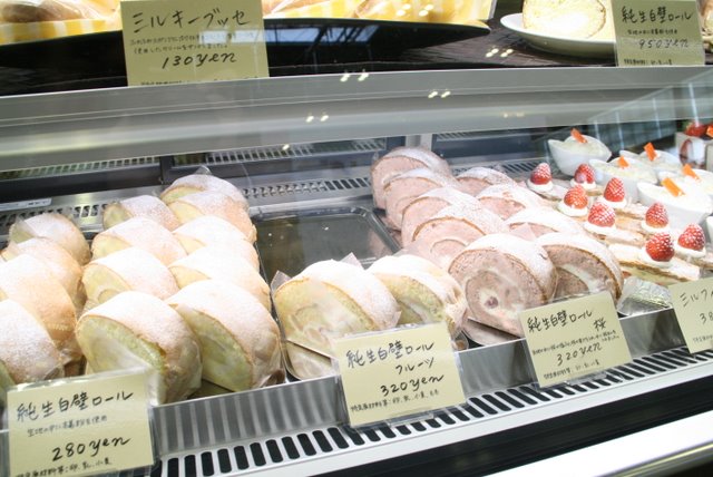 ロールの生地に本くず粉を入れて焼きあげ、北海道産のフレッシュクリームをサンド