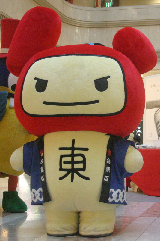 | 企業生まれの地域キャラクター。バンダイの本社は台東区駒形にあります。 古くから台東区を見守る仏様が書いた「台東」の文字が合体して生まれたのが台東くん。 ハッピで隠れていますが、ハートの形のしっぽがあります。ハートは台東区の形を示しています。 企業のイベントよりも地域のイベントに良く登場しているようです。 |