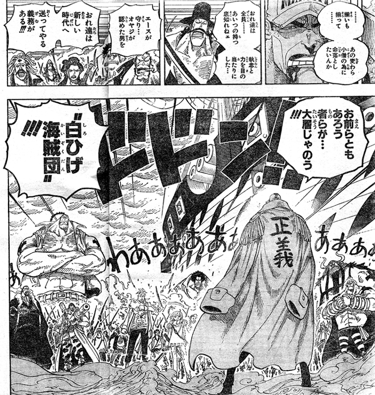 赤犬に立ちはだかるのは白ひげ海賊団!「エースが守り・・・オヤジが認めた男を おれ達は新しい時代へ送ってやる義務がある!!!」白ひげ海賊団VS赤犬の戦いが始まりました!!