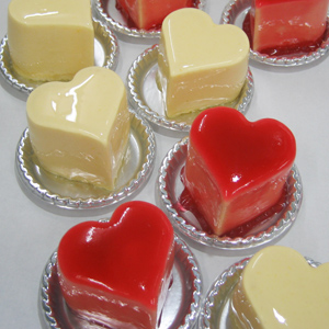 ほどよい甘味のホワイトチョコレートムースの中にグリオットチェリーのジュレを閉じ込めました。仕上げにナパーシュでコーティング♪