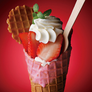 サクサクのワッフルコーンの中には、ふわふわのスポンジ、なめらかな舌触りの生クリーム、そしてジューシーな完熟苺・・・。いろんな味と食感が楽しめる、大人はもちろんお子様にも喜ばれる新感覚スイーツです♪