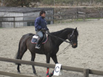慣れたら、歩いている馬の上でも行うようにします。