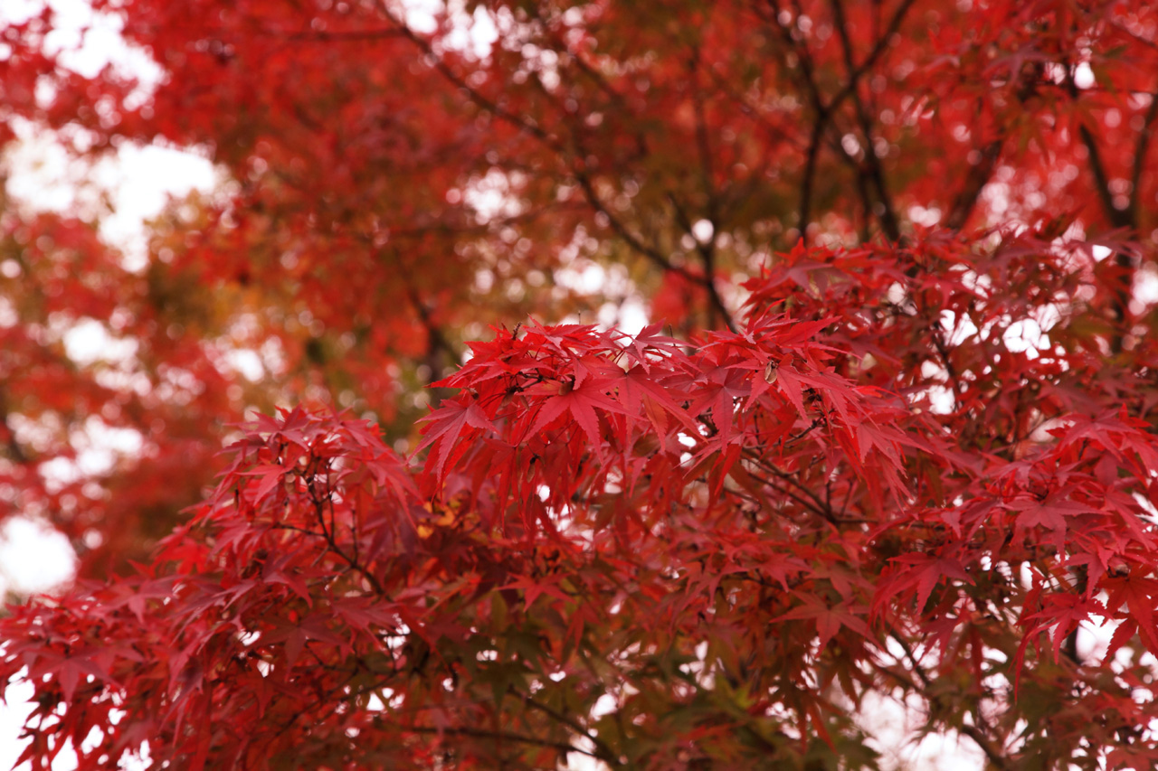 真っ赤なイメージとはちょっと異なる「くすんだ」色です。紅葉の撮り方はいくつもありますが