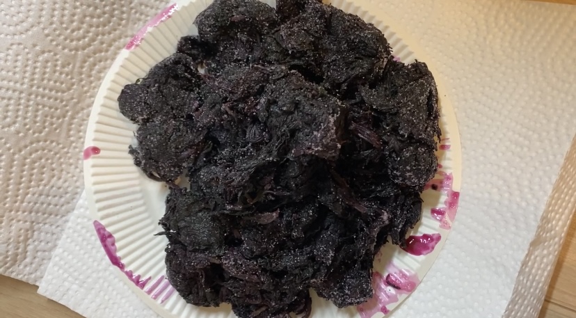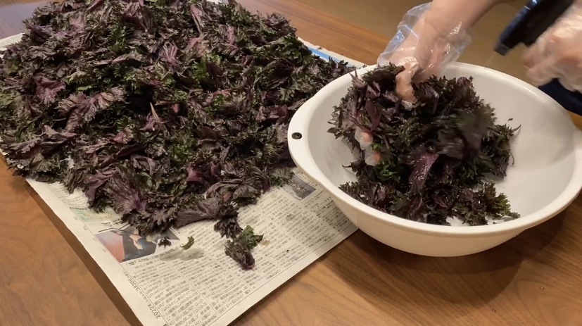 これで完成!では、赤紫蘇を、梅と一緒に漬けていきます。