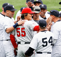ヤンキースタジアムのファンは、ワールドシリーズMVPの松井を忘れてはいませんでした。
