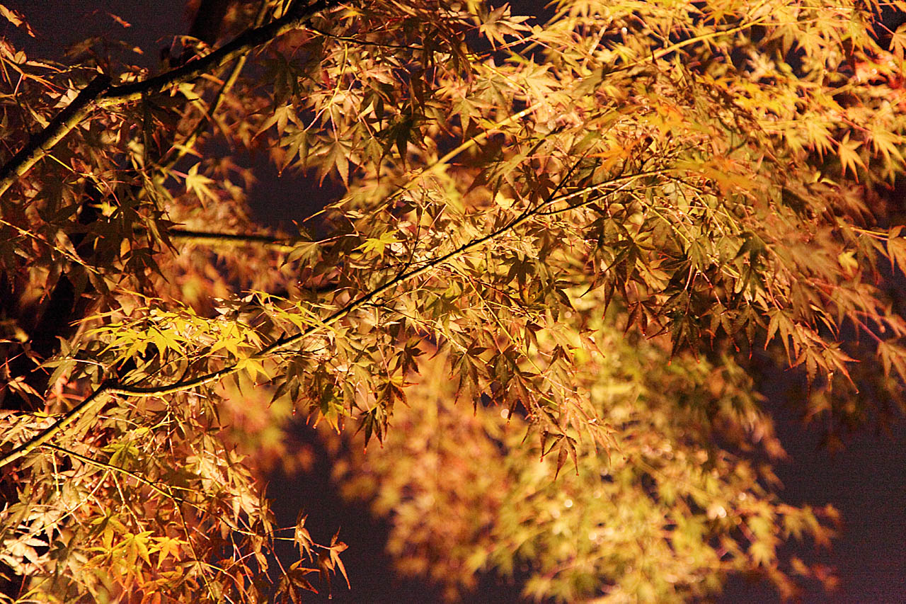 昼間より強い印象があります。さらに降雨により「葉」に光沢が出てきています。