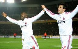 ●後半、先制ゴールを決めたACミラン・セードルフ(左)はアシストしたカカと喜び合う