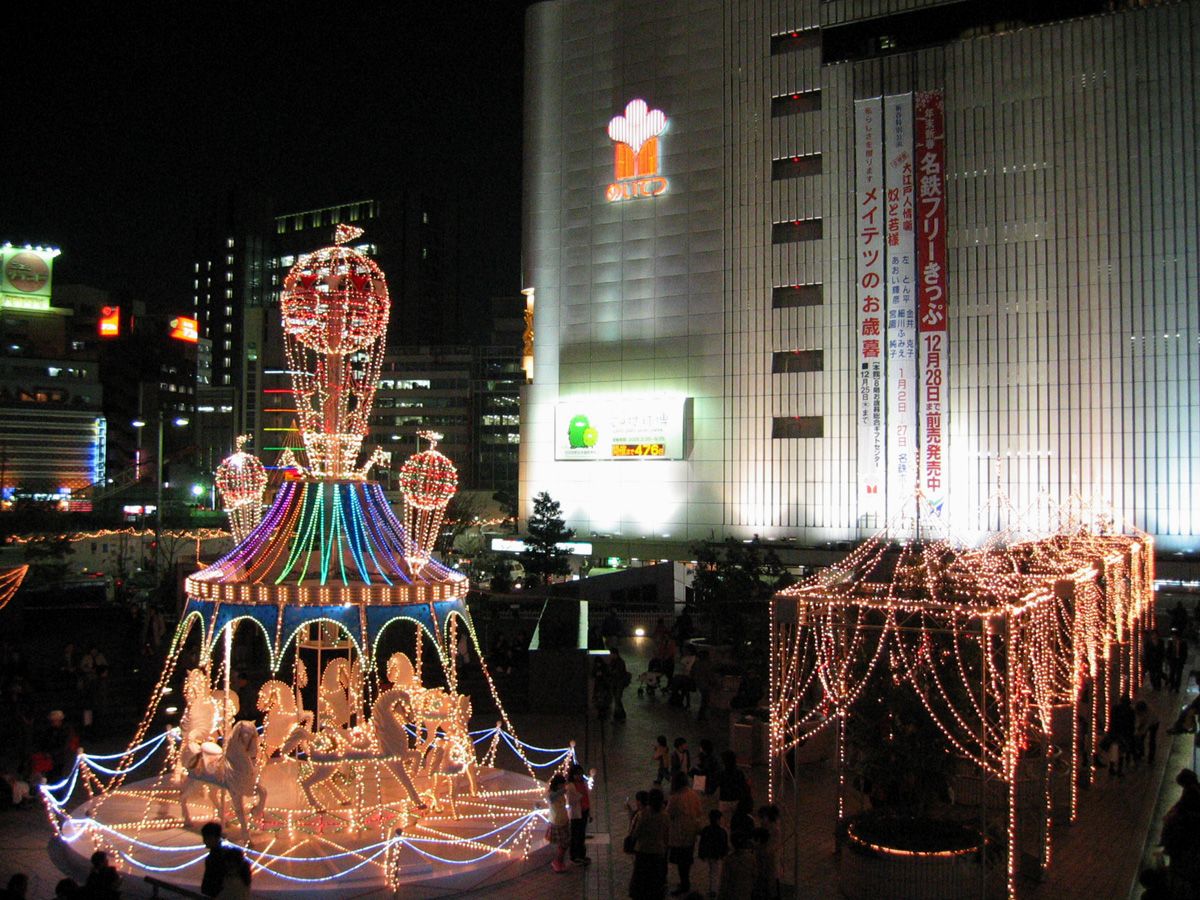 よくわかりませんが、機関車に「羽根」が付属し、横の公園にも少し電飾の飾りつけが置かれ
