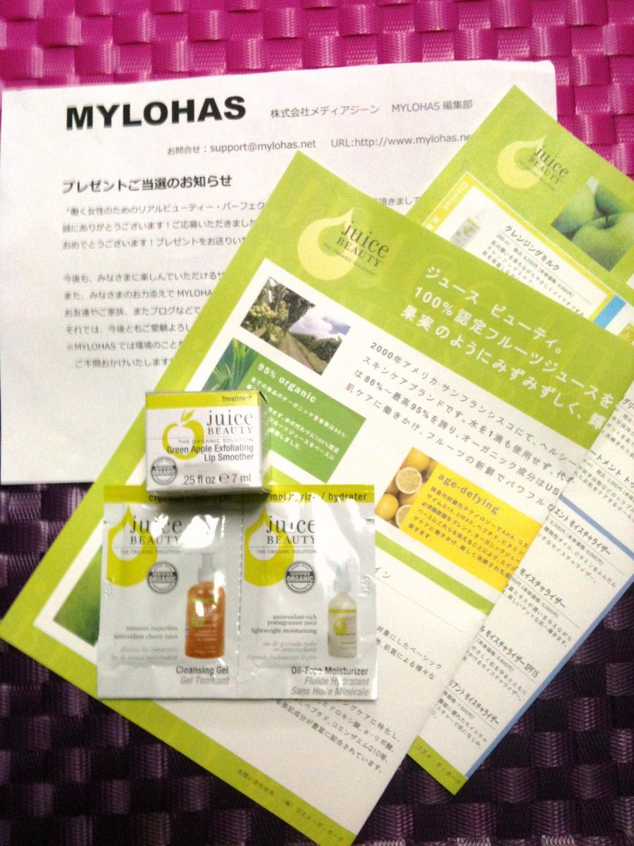 「ジュース ビューティー」さんのグリーンアップル リップスムーザー があたったんですよ。