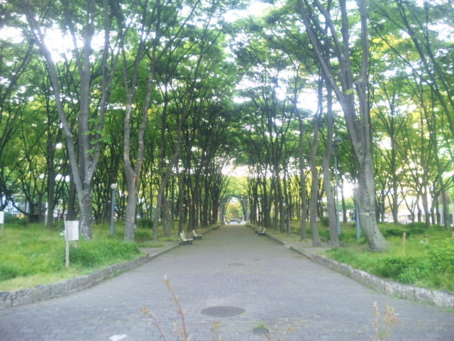ケヤキ並木が印象的な公園です。