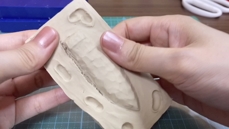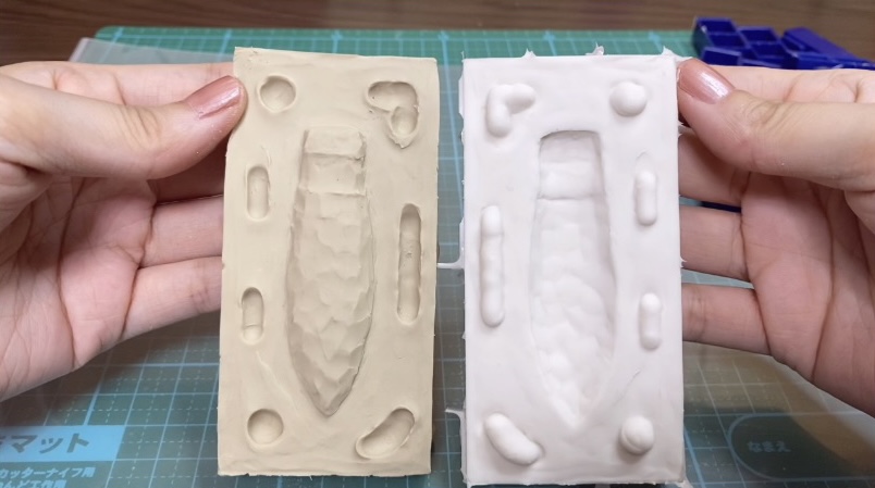 原型には、油粘土を使用。油粘土は固まらないし、何度でも再利用できるし、おすすめです。 普通の粘土や石を削ったものでも良いです。お好みで!