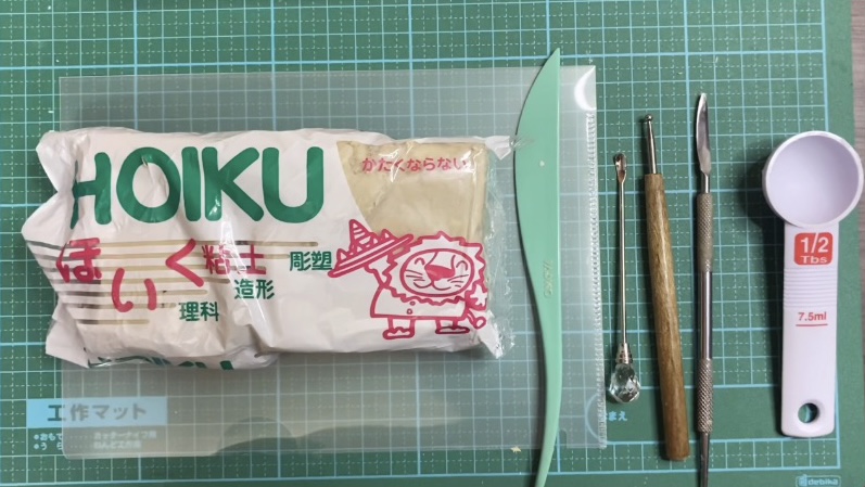 では、まず原型から作っていきます。原型作りに使った材料と道具がこちら。