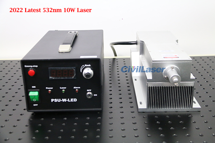 532nmグリーンの強力なdpssラボレーザーシステムです。レーザーモジュールの下部に冷却ベースを備えた10Wの高出力レーザーです。レーザーモジュールの光アウトレットには保護カバーがあり、レーザーの電源を入れる前にネジを緩める必要があります。アウトパーパワーは0~10Wまで調整可能です。動作モードには連続動作CWと変調モードTTL&アナログ切り替え可能があります。
