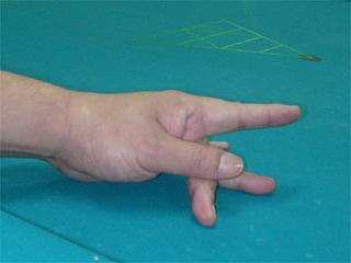 慣れるまではちょっと指が痛いかもしれませんがすぐに出来るようになります。ポイントは最後に曲げる人差し指以外は出来るだけ伸ばして置くこと。そして親指と人差し指がキューに触れる面積を出来るだけ多くとるようにすることです。