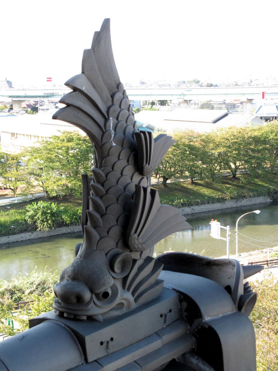 立派です。反対側は光りが強すぎたので、あえて日陰のしゃちほこを撮影してみました。