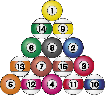 ここで決められているのは8番と5番、10番の位置だけです。8番はラックの真ん中に配置させ、5番の位置に1〜7番のいずれか、10番の位置に9〜15番のいずれかを配置すれば後のボールは任意で構いません。
