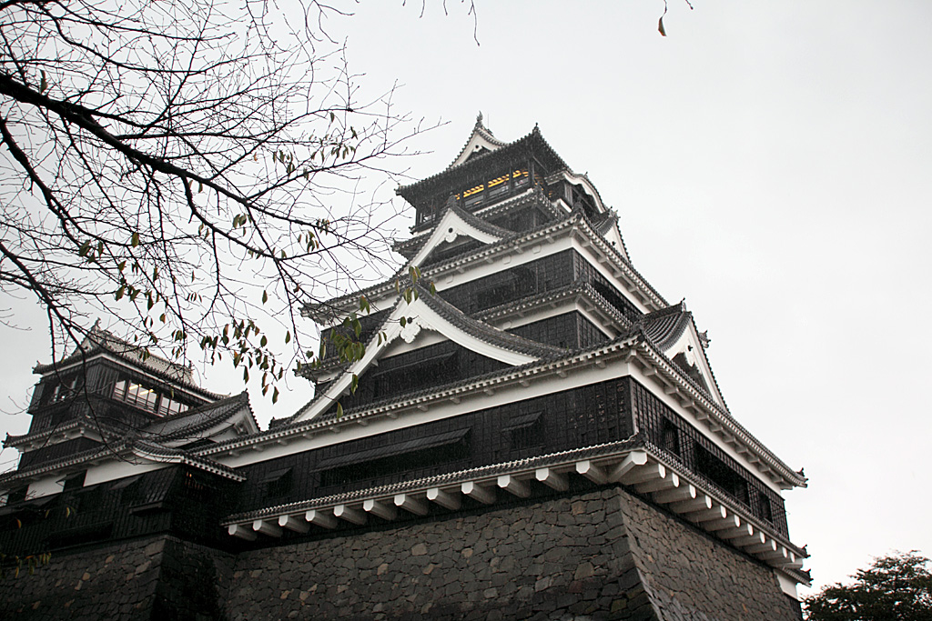 雨の熊本城です。雰囲気が出てきています。雨のおかげで城自体がぐっと