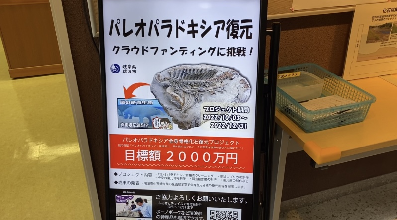 瑞浪市化石博物館でも、クラウドファンディングのお願いを頑張っていらっしゃいます。