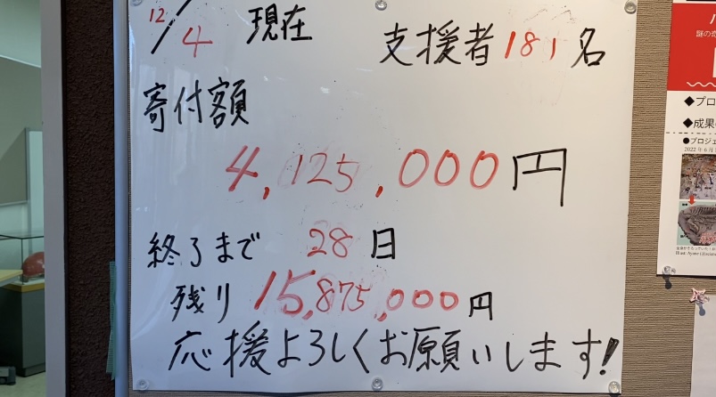 12月4日時点で、目標金額までは1500万円ほど。期限は、12月31日まで。応援よろしくお願いします!