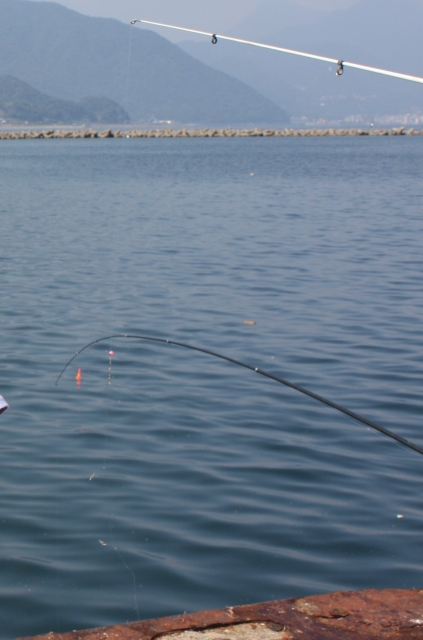 水道の出口の前で釣りました、狙いはドンぴしゃでした。