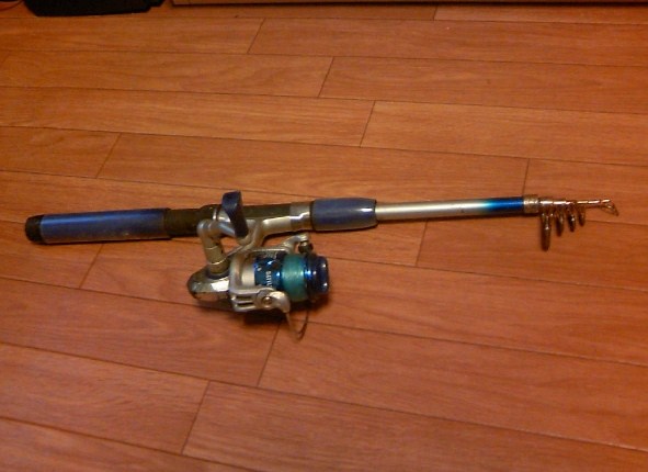 釣り竿はおもちゃみたいなリールセットですよく釣り道具屋さんで千円〜二千円の