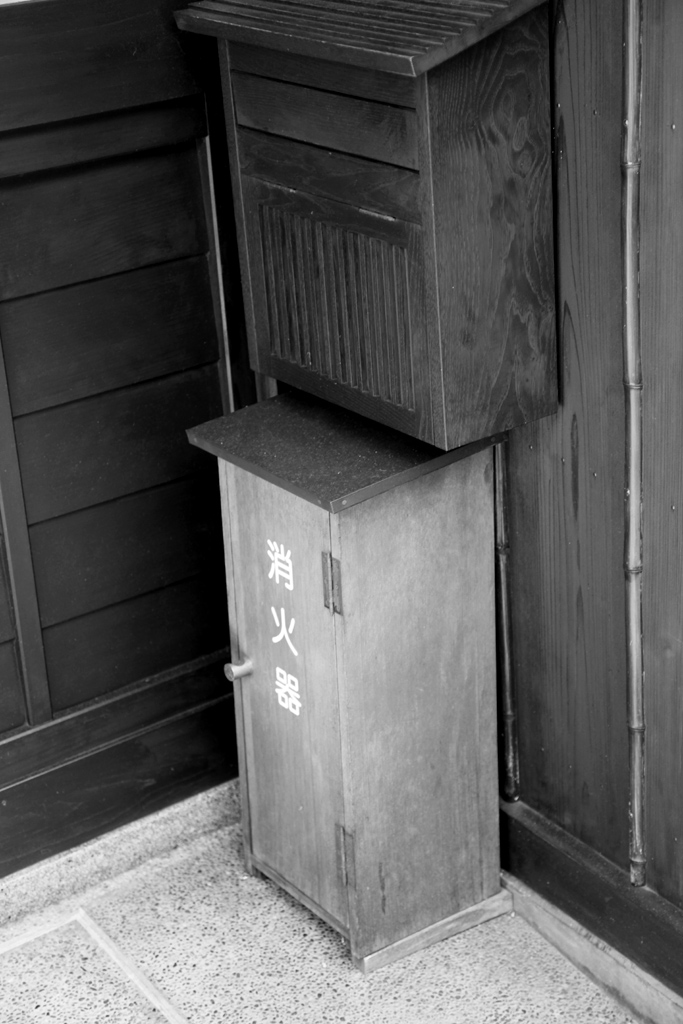 街の景観を整える為、真っ赤な消火機は、木箱の中に収納してあります。