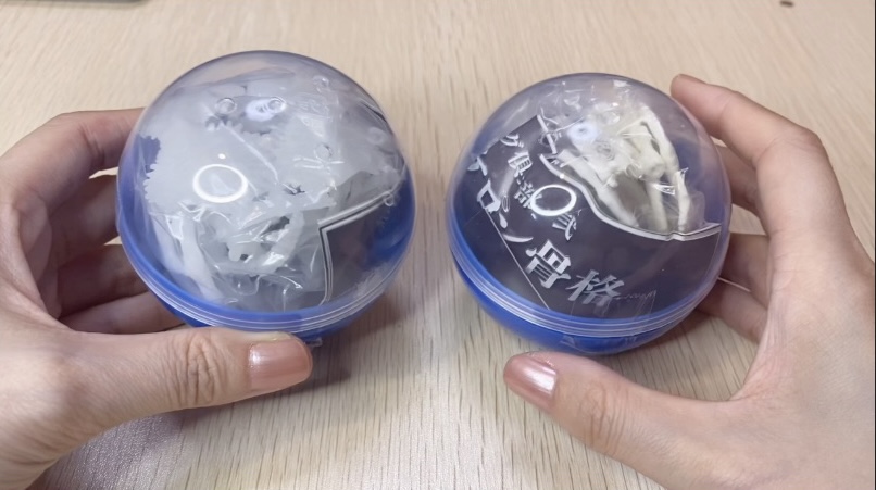 今回、「アイボリー」と「蓄光」が出ましたが、ガチャの玉から出すとこんな感じ。