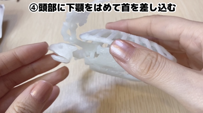 首を、甲羅の中の穴に差し込みます。