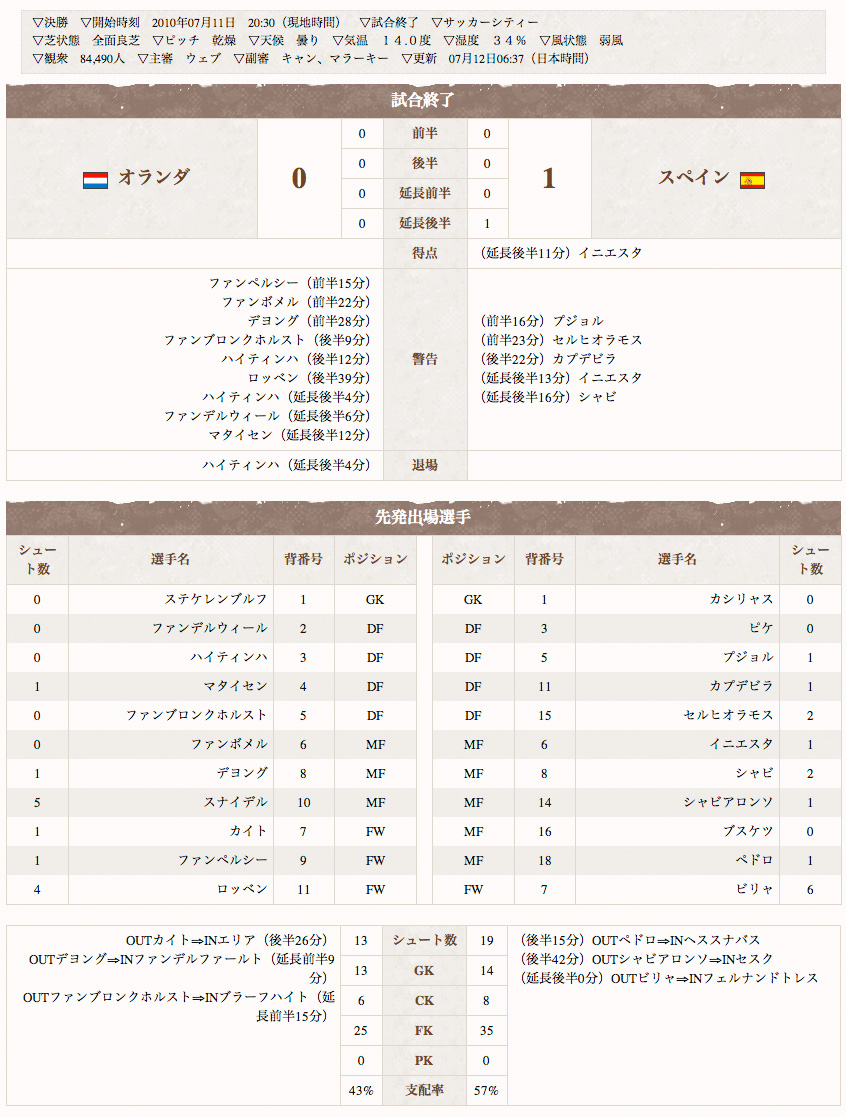 そのままスペインが逃げ切り、ワールドカップ初優勝。
