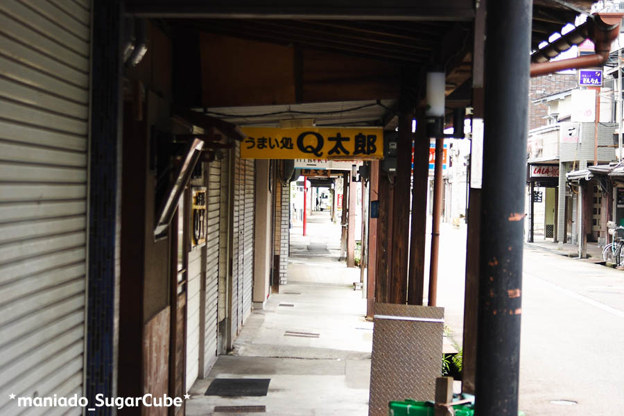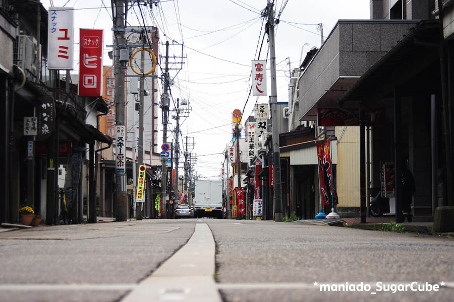 古い町並み、昔の繁華街のようだ。路面真ん中にあるのは雪を溶かす水が出てくるものらしい。