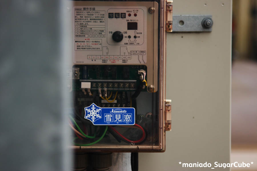 操作盤というのか、雪見窓というなにか。この辺りの道路は雪を溶かす為の水がでてくるというから、もしかしたらそれらの為のなにかかもしれない。なんにしろ、なにか。