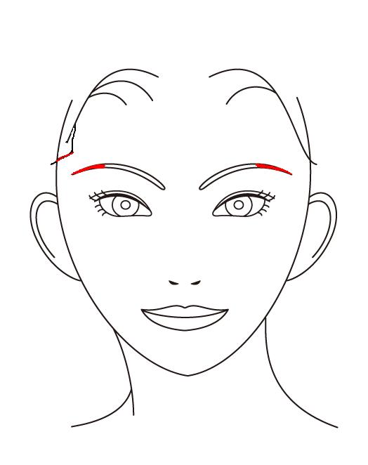 こめかみの横くらいの所にある髪の生え際のラインと平行になる様に描くと斜めから見ても綺麗ですよ
