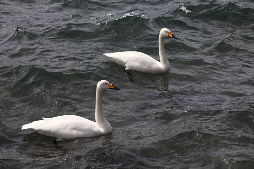 白鳥発見、♂♀夫婦か?寒そうで、一行に飛び立とうとしません。