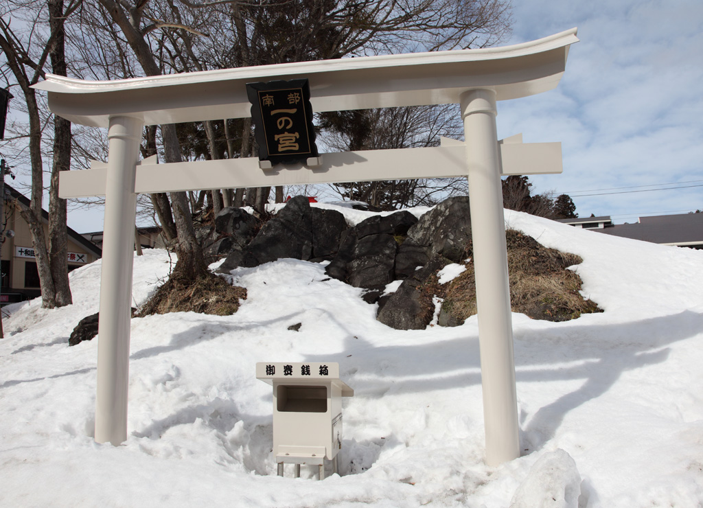 雪国らしく白い鳥居。雪が沢山降ったら本当にわからなくなってしまいそう
