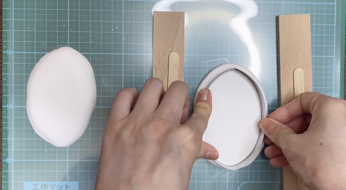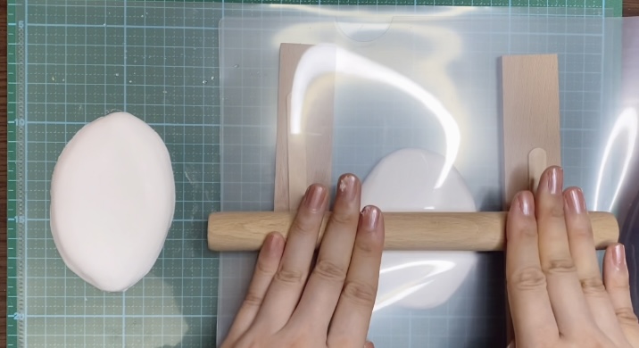 クリアファイルの上で粘土を伸ばして、厚さを均一にします。クリアファイルを使うと、ホコリが入らず表面も滑らかで均一になります。