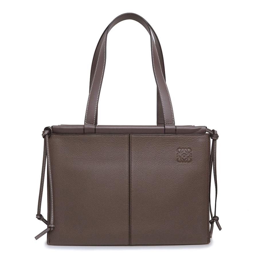 (未使用 展示品)ロエベ LOEWE クッショントート スモール トートバッグ 肩掛け アナグラム ソフトグレインカーフ レザー ダークトープ グレージュ 309.12AA93