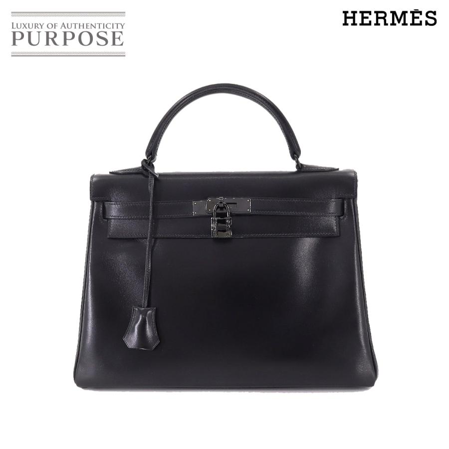 エルメス HERMES ケリー 32 ソーブラック ボックスカーフ ハンド バッグ □N刻印 内縫い ブラック 金具 Kelly 32 90177638