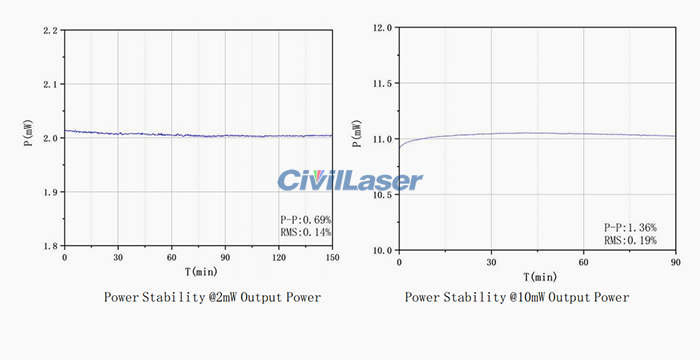 528nm 10mW SMファイバーレーザー光源のテストデータシート。