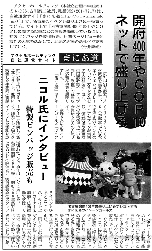 8月21日(土)付の中部経済新聞に、まにあ道が紹介されました。