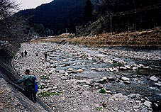 川の水を流用して養殖場