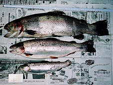 69センチの超大型ニジマス 4.5kg | 69センチの超大型ニジマス 4.5kg | 59センチの大型ニジマス |